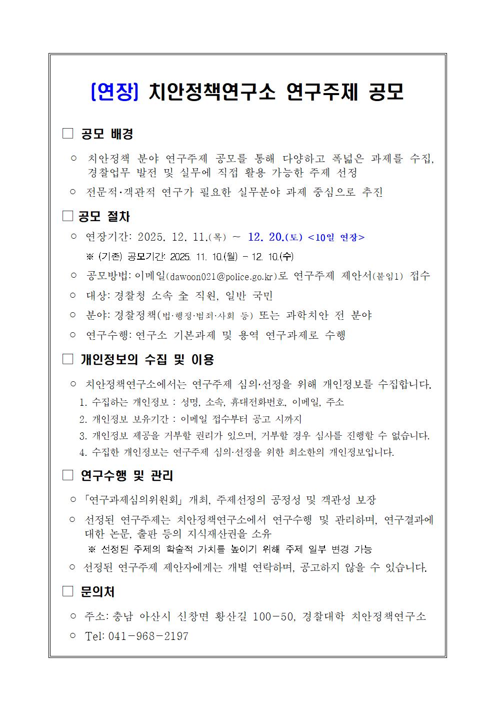 2026년 치안정책연구소 연구주제 공모기간 연장