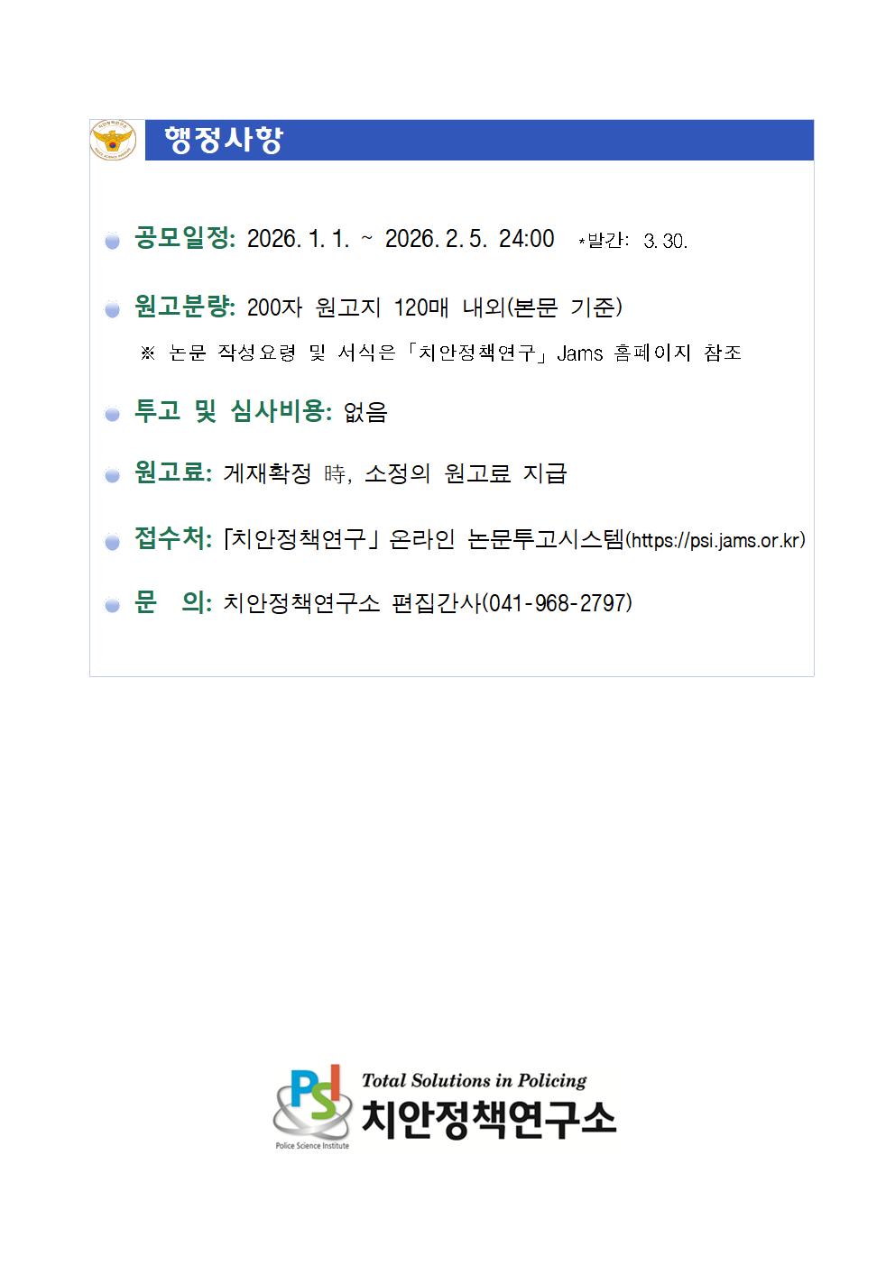 치안정책연구 제40권 1호 논문 모집